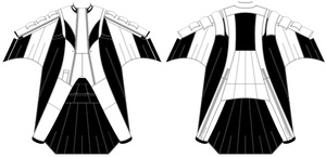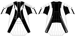 KATANA is the third wingsuit in the new 2013-14 lineup. Following the NINJA, all-around acrobatic wingsuit and the BLADE III, all-around flocking wing suit, the KATANA is designed to fly the maximum distance at the maximum speeds without loosing any agility and responsiveness.The KATANA wingsuit has large wings and special a quatro-wing design with new DRS (Drag Reduction System) system that channels the air on the top wing reducing drag and consequently allowing longer (distance) and faster (speed) flights, quicker and flatter turns without a need to maximize the surface area of the wingsuit. The KATANA layout and profile, although large, have been specially designed for high-speed flight characteristics without compromising pilot input and access to the pilot chute.
